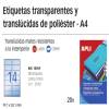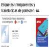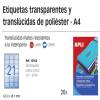 ETIQUETAS APLI L/C A-4 POLIESTER TRANSPARENTE 210*297 20H 1225