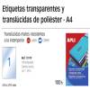 ETIQUETAS APLI L/C A-4 POLIESTER TRANSPARENTE 210*297 100H 11919
