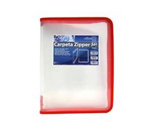 CARPETA A-4 OFFICE BOX ZIPPER TRANSPARENTE CREMALLERA 57546 BORDE ROJO UNIDAD