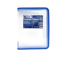 CARPETA A-4 OFFICE BOX ZIPPER TRANSPARENTE CREMALLERA 57561 BORDE AZUL UNIDAD