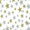 PAPEL REGALO ROLLO 62 SETIMPRES ESTUCADO ESTRELLAS ORO PLATA FONDO BLANCO E61B